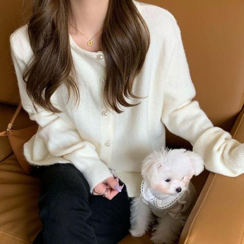 (스타일하우스) 니트티 스웨터 티셔츠 진주 여성 가디건 캐주얼 아우터 카디건 니트