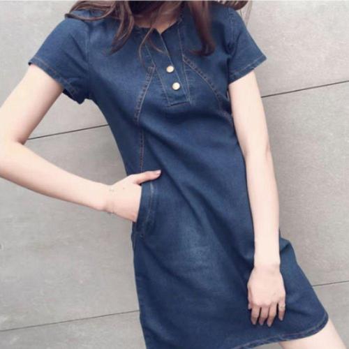 [오너클랜]인기상품 여성용 미디 길이 반팔 원피스 청 데님 스커트 작은 체형용 [WFLKZYT_260304]