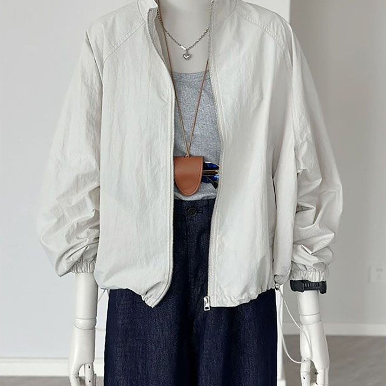 TEMU 여성용 여름 얇은 데일리 루즈핏 긴팔 점퍼 야상 바로 세우는 깃 캐주얼 트레이닝 솔리드 집업 자켓 슬림소녀 SLIM GIRL