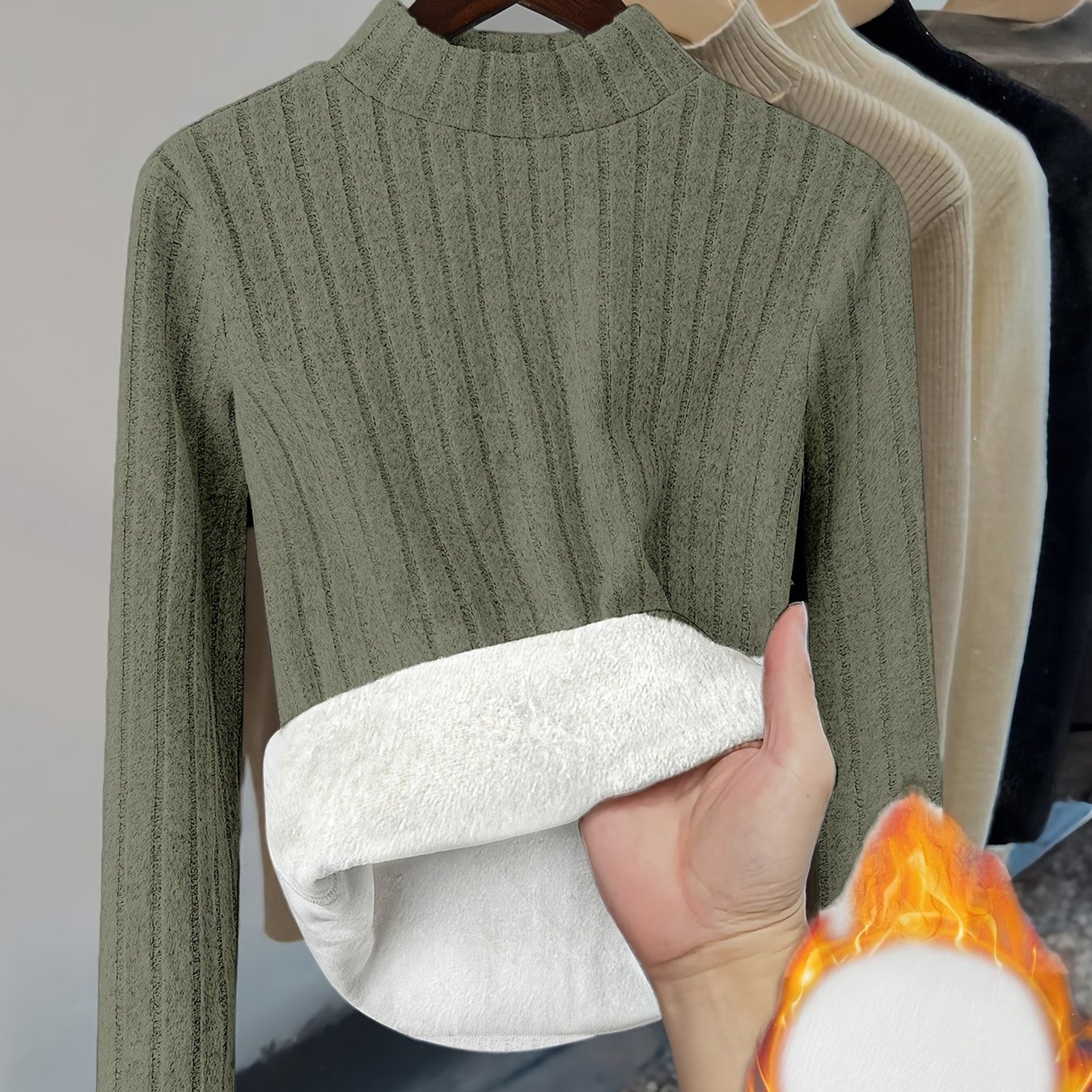 TEMU 여성용 보온 긴팔 튜닉 탑 - 겨울철 따뜻함을 위한 플리스 안감, 하프-하이 칼라 & 터틀넥 디자인, 세탁기 사용 가능 & 주름 방지, 단색 캐주얼에서 포멀까지 레이어링 블라우스 (그린/블랙/네이비/베이지/브라운)