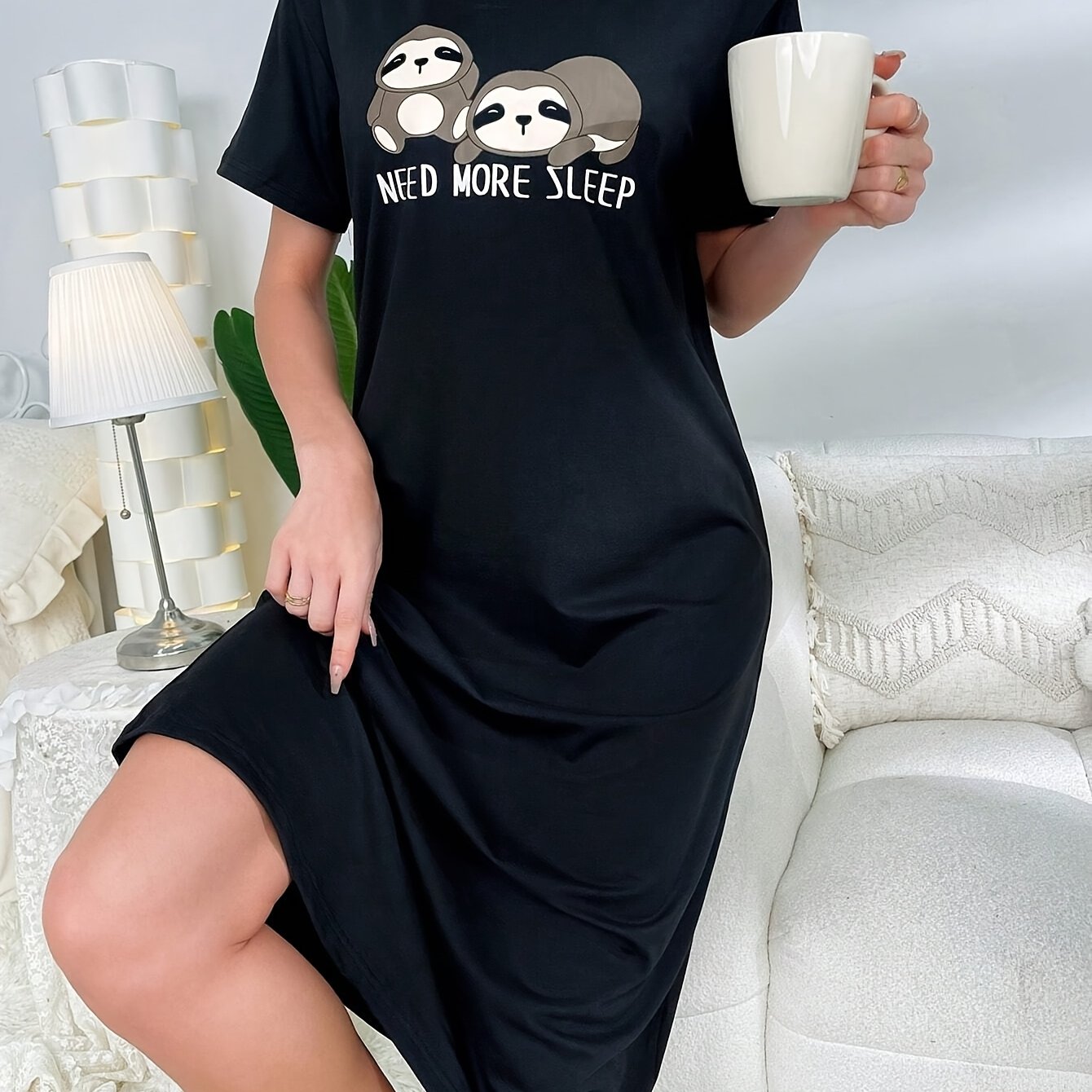 TEMU 레터와 슬로ths 캐릭터 패턴이 있는 긴 잠옷