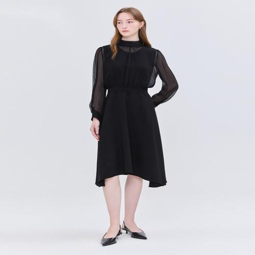 질스튜어트 뉴욕 여성 블랙 백리본타이 셔링 레이어드 시어블라우스 롱 플레어원피스 (JSDR5D601BK)