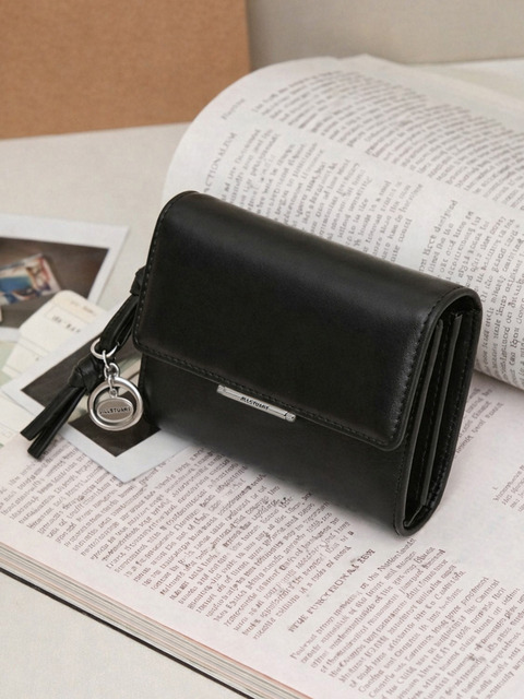 [질스튜어트]블랙 가죽 오발 장식 3단 반지갑 JAWA5F111