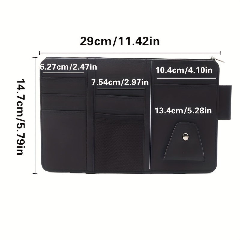 TEMU 블랙 PU 가죽 차량 선바이저 정리함 (지퍼 포함) - 카드, 안경, 현금 및 필수품 수납 가능 - 대부분의 차량에 적합한 스타일리시 자동차 액세서리 | 다중 포켓 디자인|선글라스|썬그라스