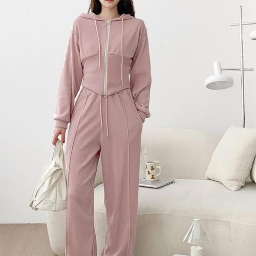[다잇템]여자 고무줄바지 컷아웃 탱크 후디집업 세트 (45898858)