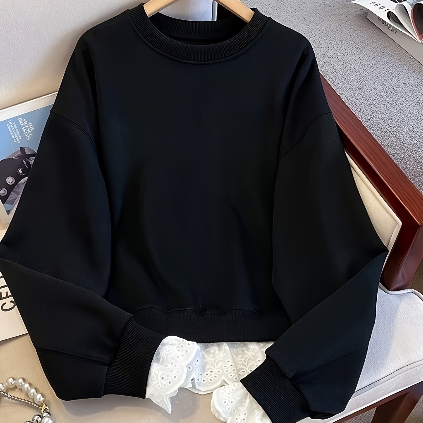 TEMU 플러스 사이즈 - 컬러 블록 라운드넥 스웨터, 가을/겨울용 캐주얼 긴팔 스웨터, 여성 의류.