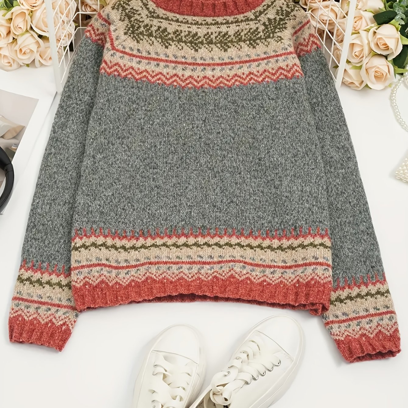 TEMU 여성용 페이어 아일 라운드 넥 스웨터 - 우아한 컬러블록 디자인, 래글런 소매, 가을 겨울 캐주얼 & 정장용 부드럽고 따뜻한 니트웨어