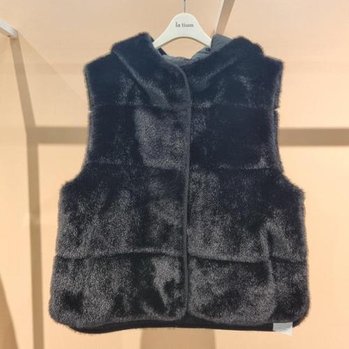 Destijl HC34 부드러운 페이크 밍크털 짧은 숏 후드조끼 D2554vt03