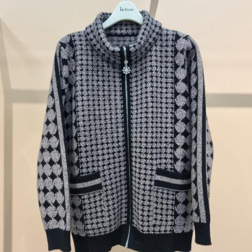 Destijl HC34 탄탄한니트조직 부드러운 타일체크 짧은 니트점퍼 D2543cD02