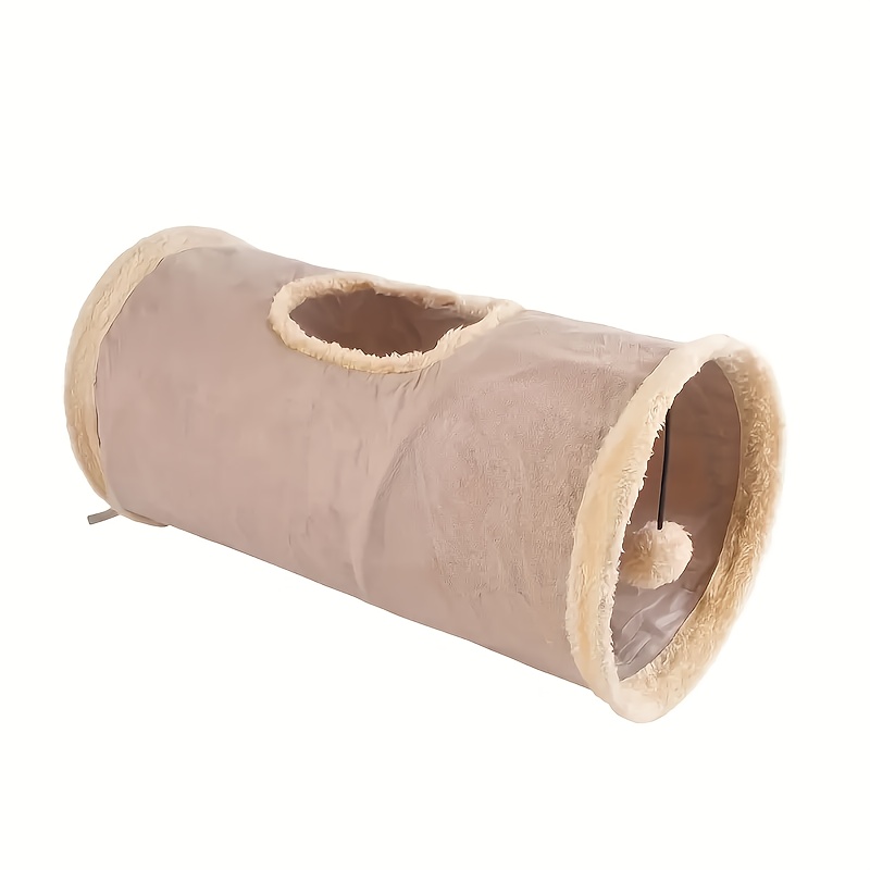 TEMU 접이식 벨벳 고양이 터널, 재미있는 공 구멍 포함, 소형 애완동물용 고양이 터널