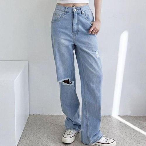 [다잇템]여성 넓은 빈티지 찢어진 무릎컷 청바지