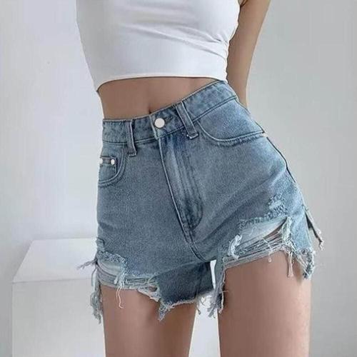[신상오픈런]여성용 하늘색 찢어진 데님 반바지