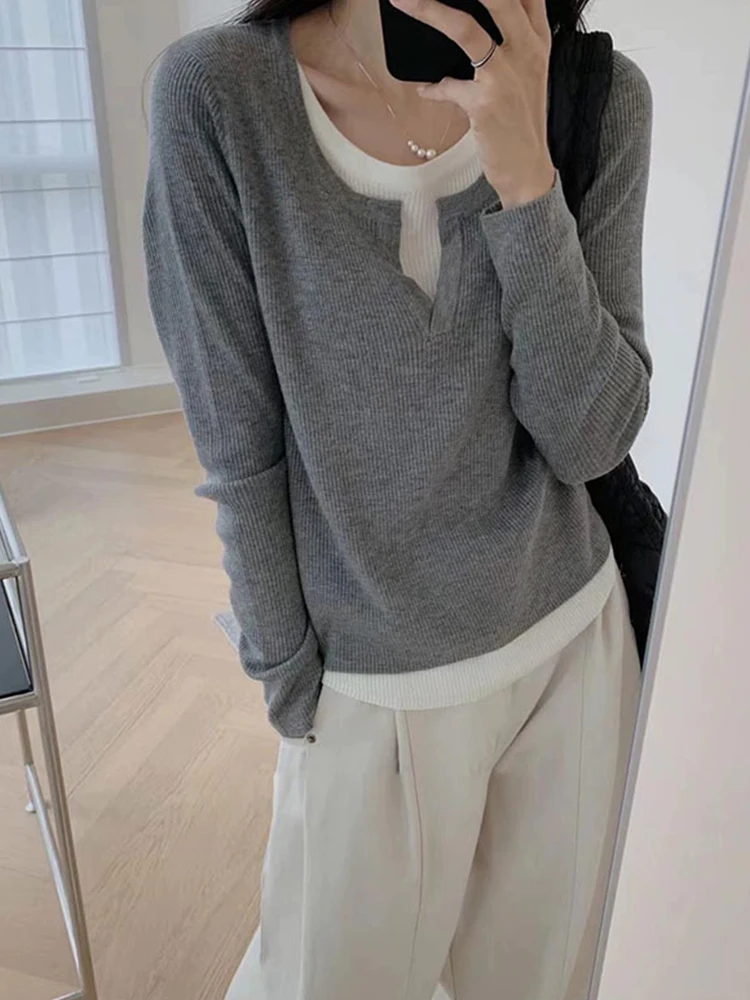 TEMU 여성 슬림핏 V넥 긴팔 티셔츠 - 키홀 디테일이 있는 신축성 있는 캐주얼 탑, 단색, 가을/겨울용 다용도 레이어링 아이템, 다용도 패션 | 키홀 디테일 탑 | 신축성 있는 원단|반팔니트