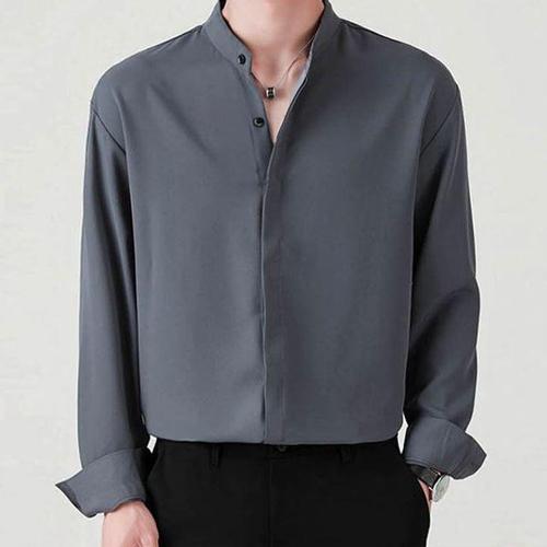 남성 차이나칼라 긴팔 와이셔츠 남자 정장 무지 셔츠 남방 직장인 회사원 여름 선물 / 1019 다크그레이
