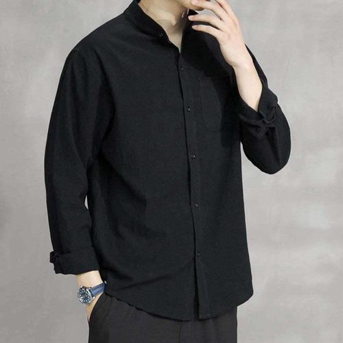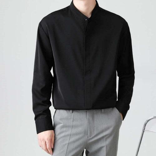 남성 차이나칼라 긴팔 와이셔츠 남자 정장 무지 셔츠 남방 직장인 회사원 여름 선물 사계절 / 1013 블랙