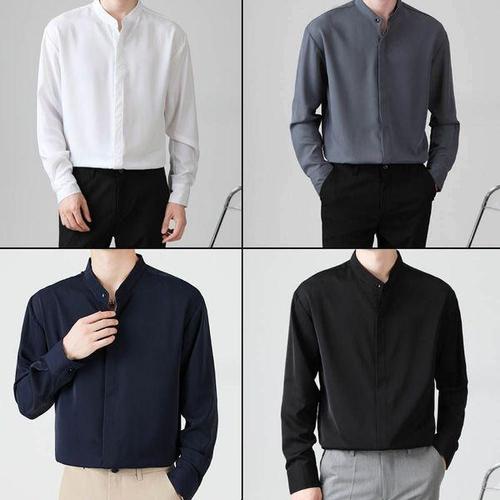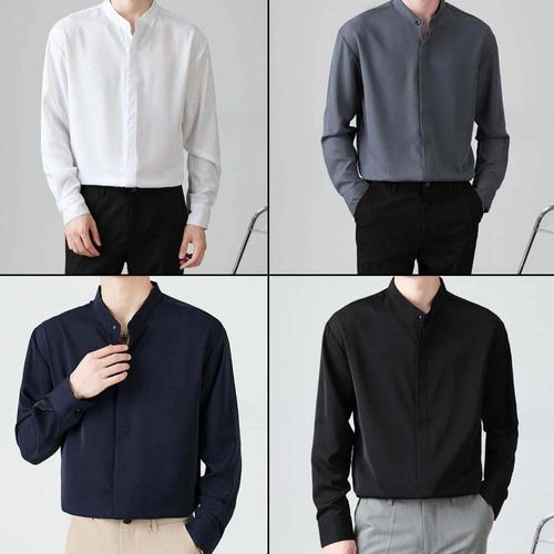 [모두쇼핑]남자 기본핏 차이나카라 긴팔 셔츠 봄 가을 데일리 남성셔츠 차이나넥셔츠 남자오피스룩 남성차