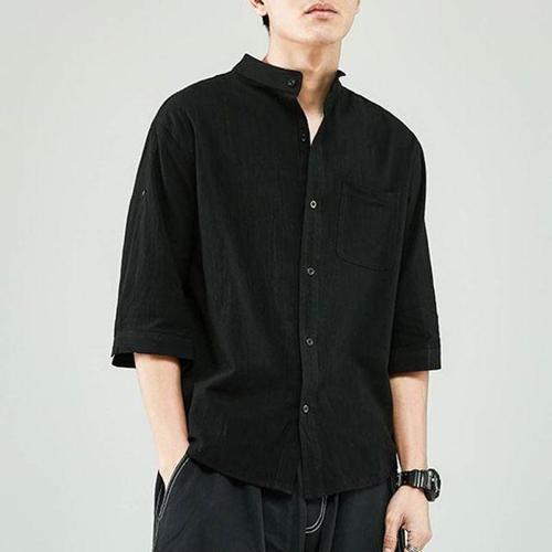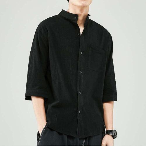 [셀럽하우스]남자 GQQK2082 여름 린넨 차이나카라 7부 셔츠 롤업 통풍 시원