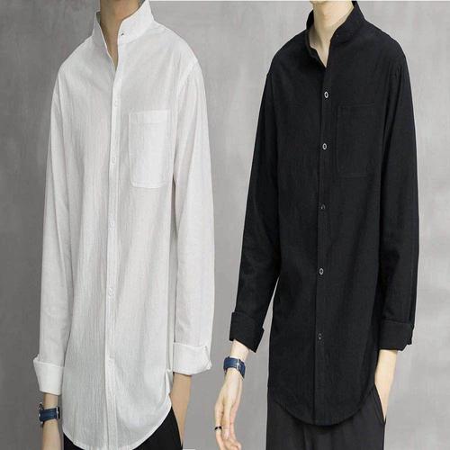 [셀럽하우스]남자 ZMSD8379 여름 데일리 차이나카라 얇은 린넨 긴팔 셔츠