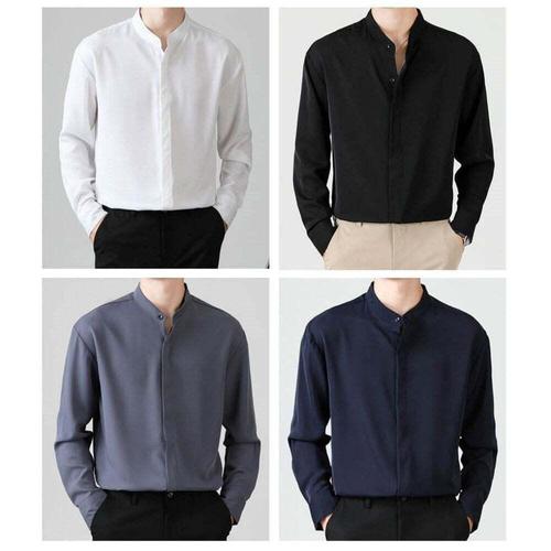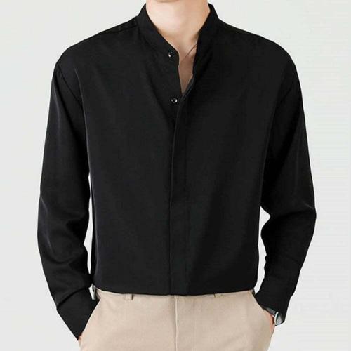 남성 차이나칼라 긴팔 와이셔츠 남자 정장 무지 셔츠 남방 직장인 회사원 여름 선물 사계절 / 1013 블랙
