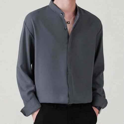 남성 차이나칼라 긴팔 와이셔츠 남자 정장 무지 셔츠 남방 직장인 회사원 여름 선물 / 1019 다크그레이