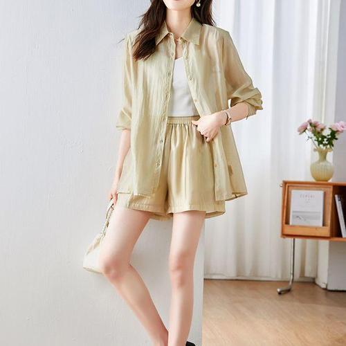 [무드수]찰랑 시스루 여름 셔츠 밴딩 반바지 세트