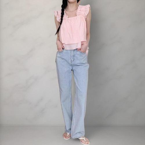 [옷자락]여성 사랑스러운 프릴 캉캉 스퀘어넥 찰랑 나시 탑