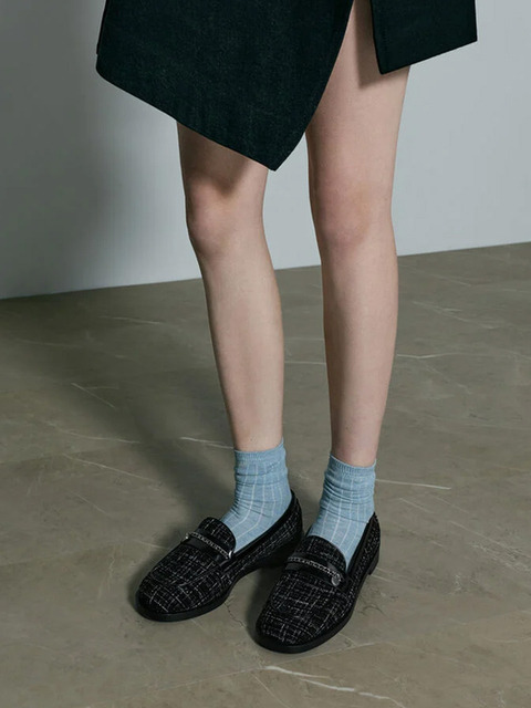 [찰스앤키스] 트위드 브레이디드 체인 메탈릭 악센트 로퍼_2colors CK1-70381154