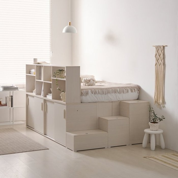포더홈 파운드 파티션 빅 확장형 수납침대 프레임 Q+와이드책장