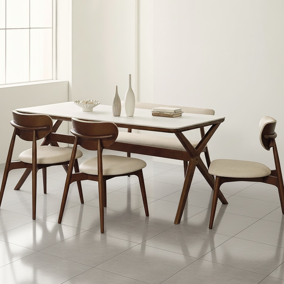 제인 천연세라믹 4인용 식탁세트 벤치형 1200 (의자2+벤치1)