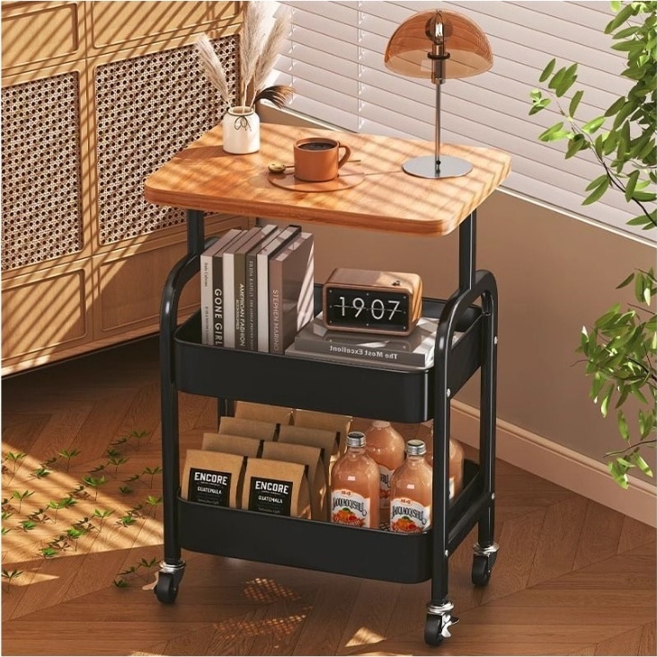 원목 이동식 트롤리 사이드 테이블 틈새 미니 협탁 거실 주방 소파 침대 옆 철제 수납 선반