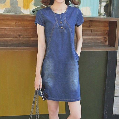 [오너클랜]인기상품 여성용 미디 길이 반팔 원피스 청 데님 스커트 작은 체형용 [WFLKZYT_260304]
