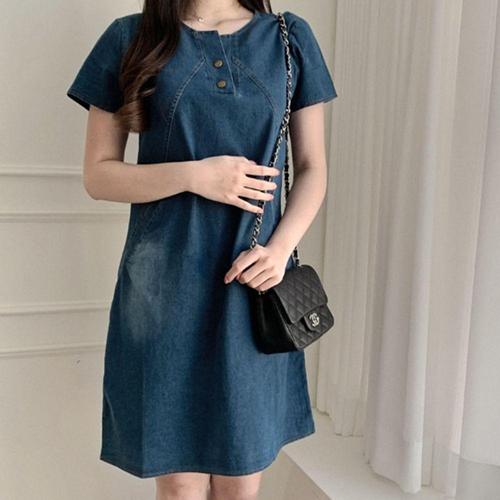 [오노마] ONM 데님 캐주얼 반팔 미니 청 빈티지 원피스 스커