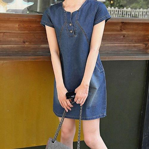 [오너클랜]인기상품 진청 데님 반팔 미니 스커트 여름용 캐주얼 치마 빈티지 미디 원피스 [WFLIEV2_260301]