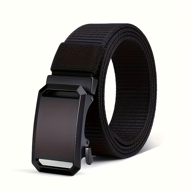 TEMU 남성용 나일론 혼방 자동 버클 캐주얼 벨트 - 야외 및 일상복용 조절 가능한 스포츠 허리 밴드, 내구성 좋은 블랙 벨트, 선물용, 캐주얼 벨트, 남성용 벨트