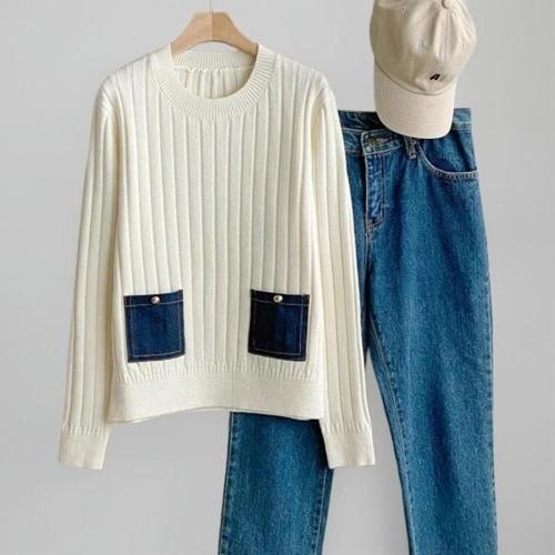 [다잇템][다잇템] 여성 청포켓 단가라 비스코스 롱슬리브 U넥 니트_23359523_588872