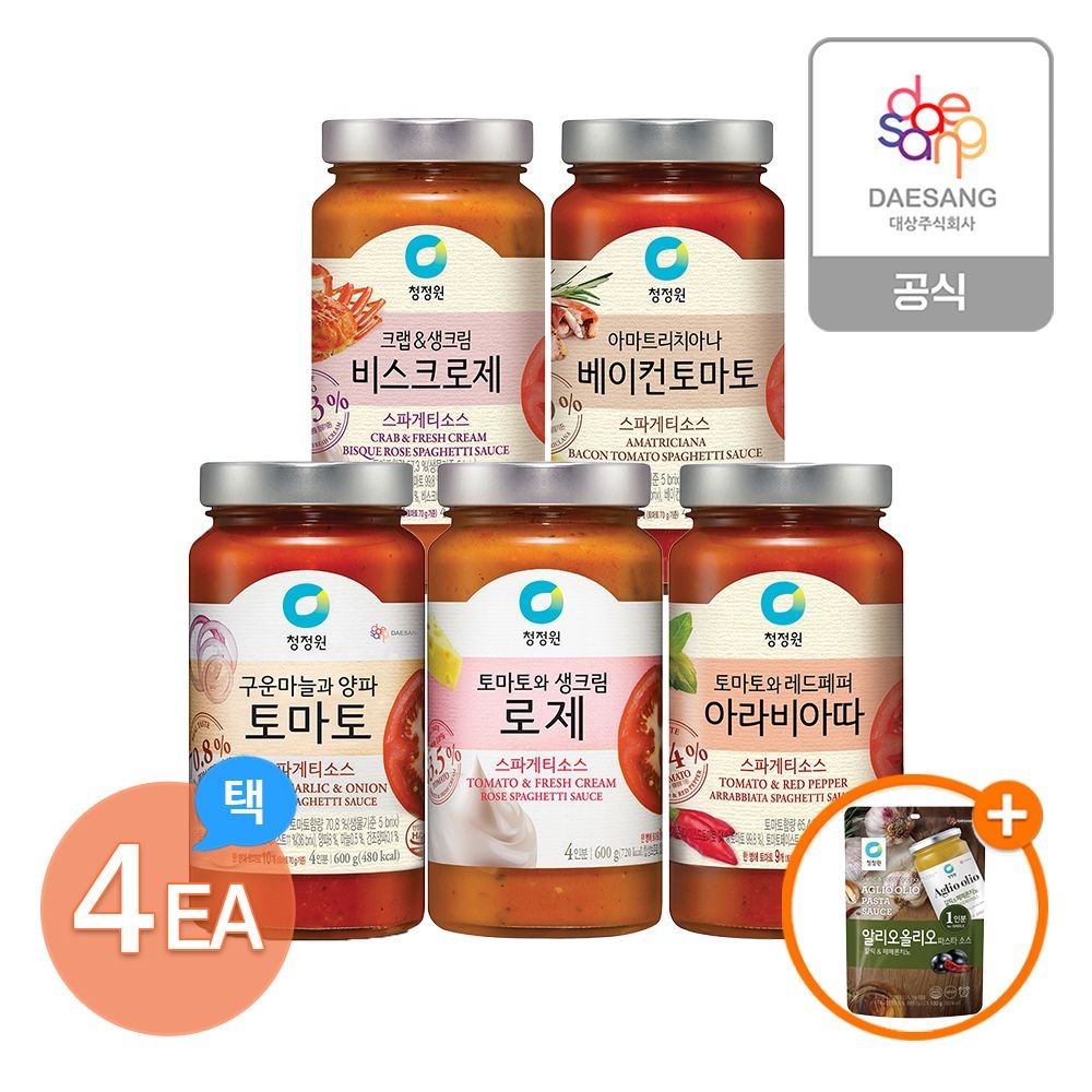 [4+1] 청정원 스파게티소스 4병 골라담기 + (증정)파우치소스 1개
