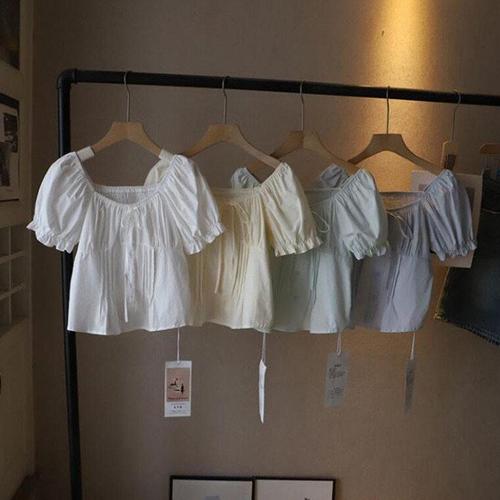 [굿쇼핑몰_의류]4컬러 여성 러블리 셔링 스퀘어넥 반팔 블라우스