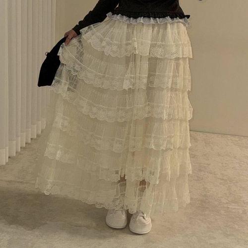 [다잇템]여자 꽃무늬 발레코어 페미닌 레이스 롱스커트