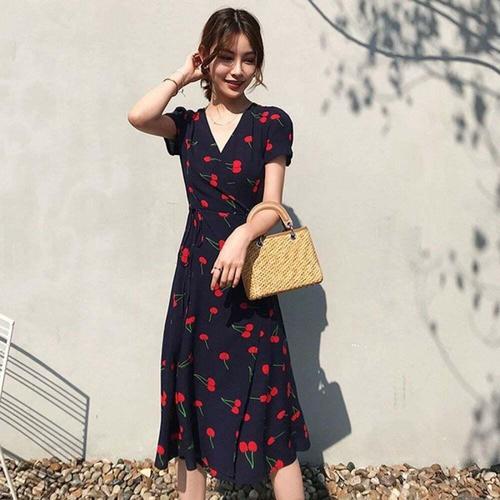 [오너클랜]인기상품 여성용 반팔 체리 무늬 랩 스타일 원피스 여름 데일리룩 [WFLL9VP_260304]