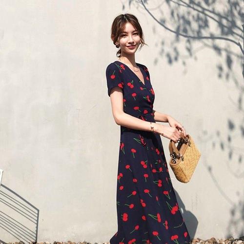 [다잇템]여자 체리 SS 반소매 V넥 원피스 (10586471A)