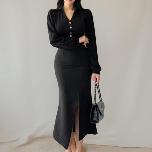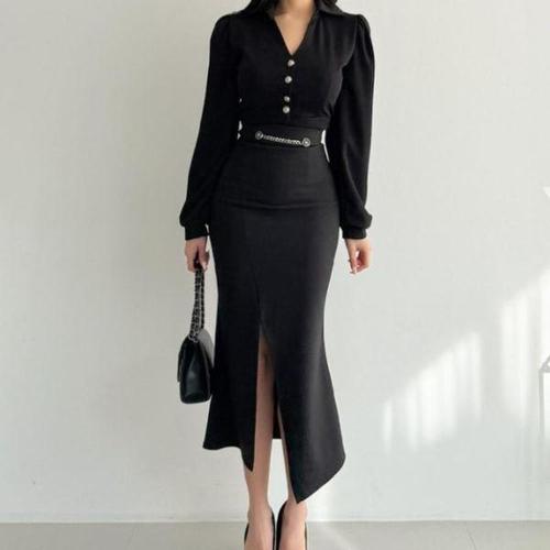 [하프클럽/]여자 사선 트임 체인 포인트 머메이드 롱 스커트