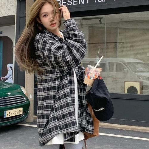 카디건 코트 체크 재킷 후드 투 남친 가을 페이크 OP3