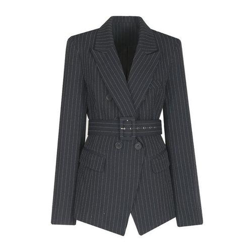 [비비드시크릿가너]여성 스트라이프 더블 벨티드 정장 자켓