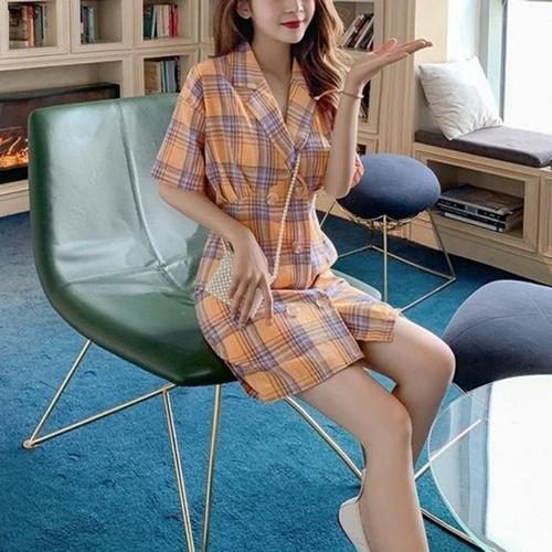 [XB520L06]발랄한 더블버튼 체크 원피스