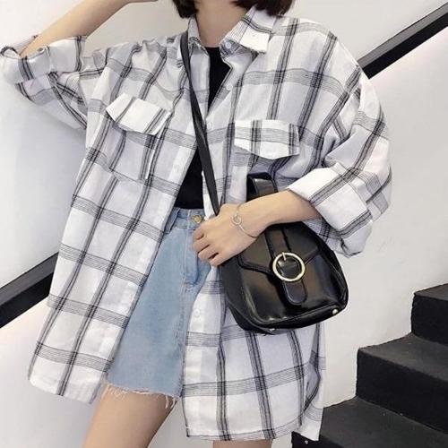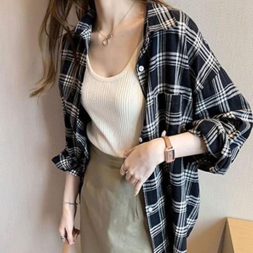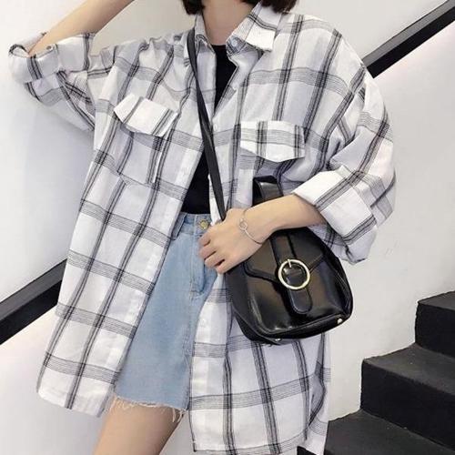 [엄지척]여성 클래식 체크무늬 남방 롱 기장 셔츠 루즈핏_19659214_667501