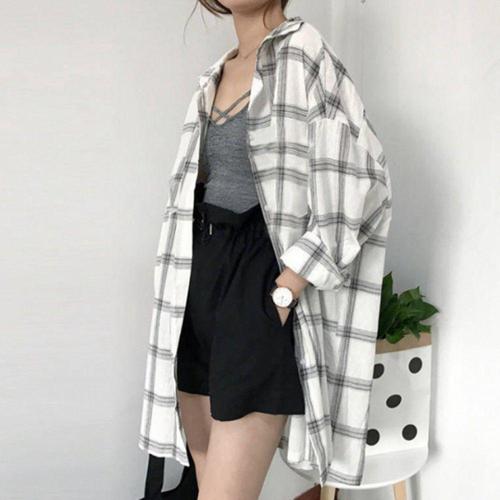 [오너클랜]인기상품 여성용 체크패턴 데일리 롱 셔츠 오버핏 루즈 핏 남방 [WFLL98N_260304]