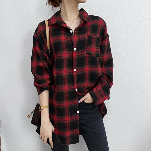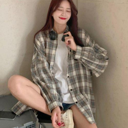 [오너클랜]인기상품 여성용 체크 패턴 루즈핏 롱 슬리브 셔츠 남방 2색 [WFLL76O_260304]
