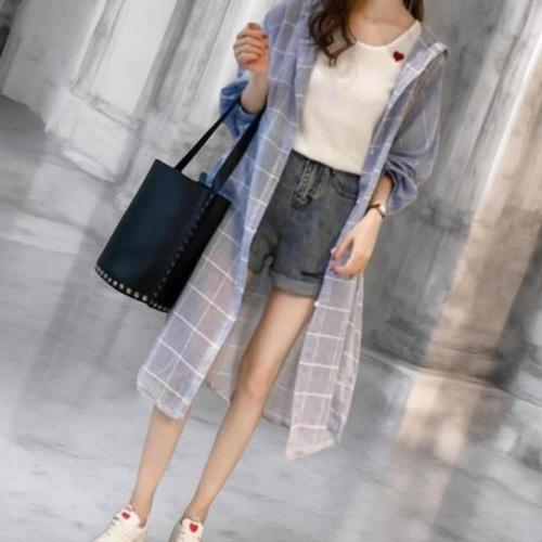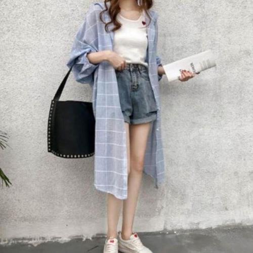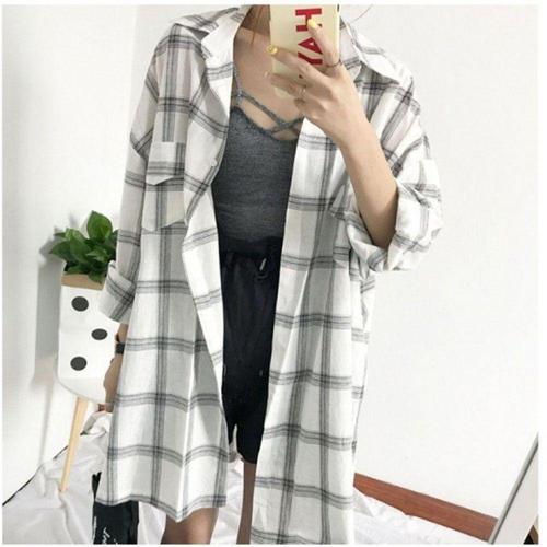여성 오버핏 체크 셔츠 롱 남방 HH-D49