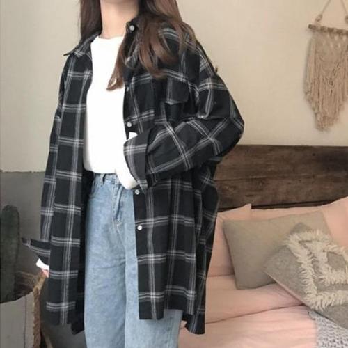[블랙퀸] 플레드 체크 롱 셔츠 blk004045