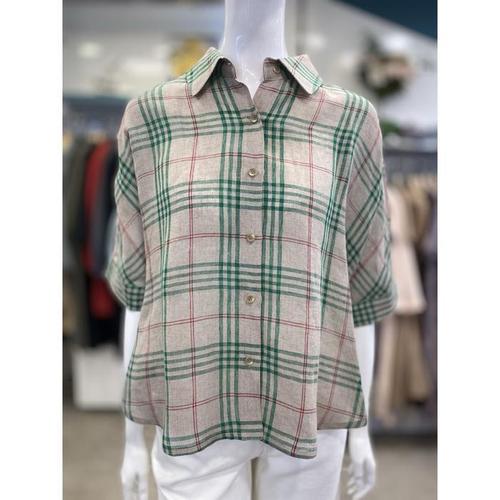 [크로커다일레이디](CLEMBL208) 체크 린넨 반팔 셔츠 블라우스
